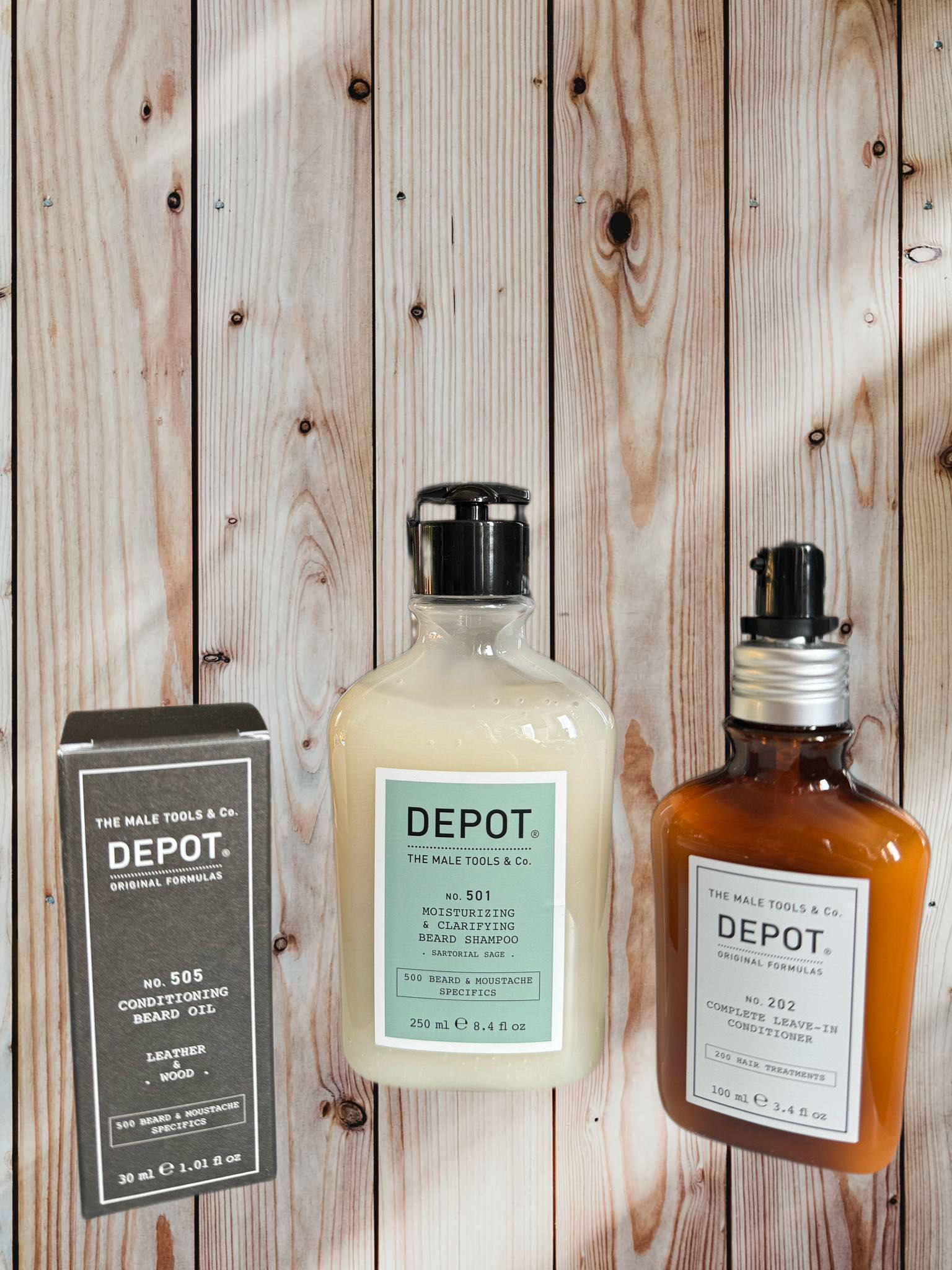 Kompletny zestaw do brody włoskiej marki Depot, na który składa się olejek do brody o zapachu Ginger & Cardamon, wspaniała odżywka do brody oraz szampon czyszczący zarost i skórę pod nim. Wszystkie trzy kosmetyki przeznaczone są do codziennej pielęgnacji zarostu oraz brody. Wysoka jakość i oryginalne zapachy powodują, że jest to kluczowy producent męskich kosmetyków na rynku. Zestaw powstał z myślą o mężczyznach, którzy szukają gotowego kompletu produktów, by zadbać o brodę.