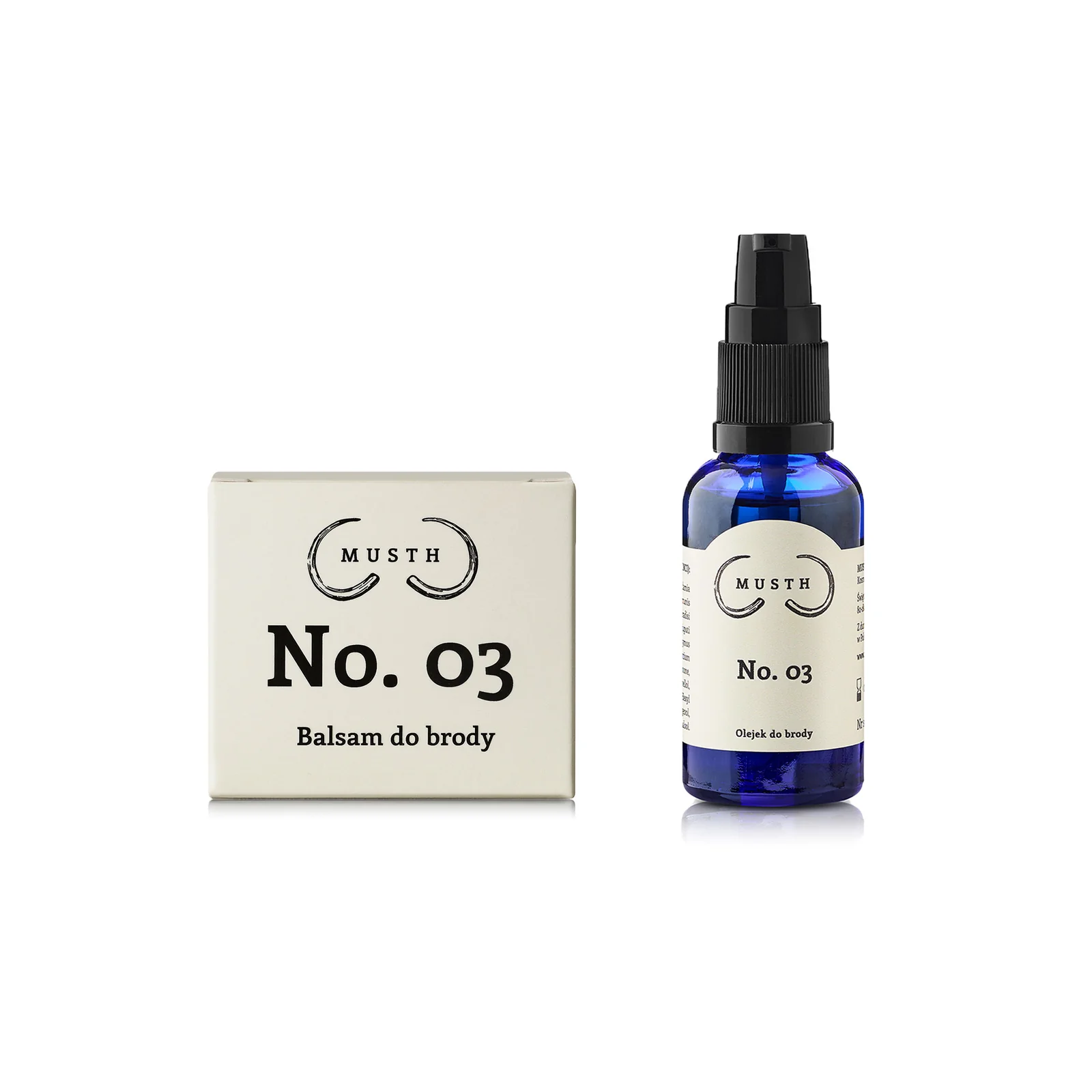 Zestaw do pielęgnacji brody składający się z balsamu i olejku do brody No. 03 marki Musth z Gdańska