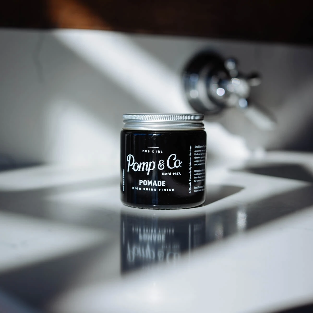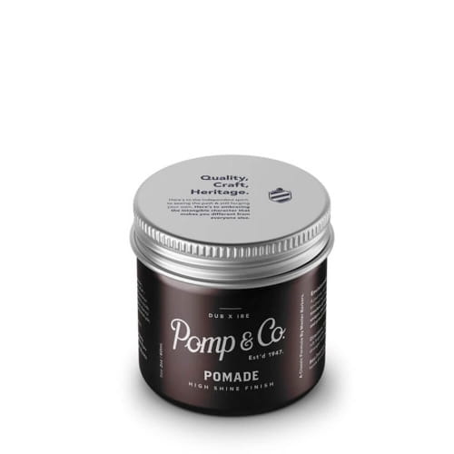 Pomp&Co Pomade High Shine Finish to wspaniała pomada do włosów o mocnym utrwaleniu i pozostawiająca na włosach wysoki połysk. Ta pomada irlandzkiej marki przeznaczona jest do tworzenia wyraźnych, eleganckich męskich fryzur retro, takich jak pompadour oraz innych klasycznych fryzur z lśniącym wykończeniem. Podobnie jak inne kosmetyki od tego producenta, także pomada do włosów Pomade Pomp&Co posiada piękny, świeży koloński aromat. Po nałożeniu kosmetyku na włosy, zapach jest dość długo wyczuwalny.